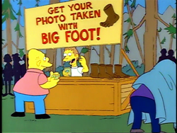 The episode then gets super crazy as a naked Homer tries to eat some live bees, which ends up numbing his mouth, and in a rage he runs through some mud, and is caught on camera by a man filming a stream, and of course, the news decides that he’s Bigfoot. I love everything about this scene, the news anchor talking about Bigfoot so seriously, the fact that the graphic was just the word “BIGFOOT!” with an exclamation mark, and of course the tag on the end of the joke when he says that they’ll get back to the President’s address, already in progress. Anywho, a phalanx of reporters comes down on the forest, looking for Bigfoot. Marge and Lisa are found by reporters, and after they show a picture of Bigfoot to Marge, she reveals that it’s just her husband, and we get a series of magazine cover with titles like “I Married Bigfoot” and “the Bigfoot Diet.”