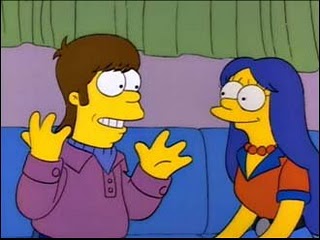 I love that Homer tries to ask Marge out in the detention room, even though each word he says gets him more detention. But Marge isn’t into Homer, and deflects his advances. We then get to see teenaged Homer getting advice from Abe. And boy do you get the feeling that Homer’s life with Abe sucked. The house is filthy, and they both seem super unhapy. All the episodes I’ve seen just gloss over that period in Homer’s life, and man it would be depressing to see it. Anyway, he asks Abe for advice to woo Marge, and he basically just says that Homer shouldn’t try to date someone whose obviously better than him. Homer decides to ask his guidance counselor for advice, and he just tells him to share interests with Marge, so he goes and joins debate club. And when he goes to debate club we get to meet Artie Ziff, who is awesome. Pretty much all the characters that Jon Lovitz did on this show were great, though they were usually one-offs. But Artie is so great, the snotty little shit. And his afro is awesome.