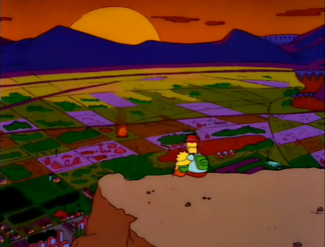 Lisa then gives away all the ill-gotten Malibu Stacy accessories that Homer got her from the gambling as an act of defiance. Then Homer comes in, like a moron, and tries to get her to tell him who to bet on for the Super Bowl. Lisa is understandably pissed, and tells him Washington will win, but after he celebrates, she tells him that there’s a chance she’s so mad that she’s telling him the wrong team, so that he loses. It then becomes clear that the stakes of the Super Bowl are now on whether Lisa still loves Homer. Homer ends up getting to emotional the day of the game, and heads over to Moe’s to watch it. He doesn’t even make a bet, he’s just focused on seeing if Washington wins, and Lisa still loves him. There are then some silly cut-away gags, like the weird as hell Halftime Show with the aliens dancing to “Rock Around the Clock,” and the dude running out of the Church when he realizes its Super Bowl Sunday. Not even Flanders was in the church. Jeez. Anyway, Washington wins, and Lisa still loves Homer. Yay! We then get the sweet scene of the two of them climbing Mount Springfield the next Sunday, continuing on Daddy-Daughter Day.