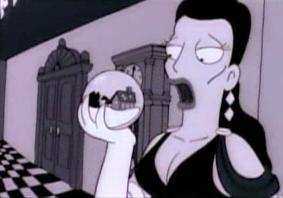 Turns out Barney also stole his idea for a weird local ad, and makes one where the Plow King beats up a cutout of Mr. Plow, eventually getting help from Linda Ronstadt, who then sings a song about how much Mr. Plow sucks and Plow King is rad. Homer is understandably upset with this turn of events, although we feel a little less bad for him when we find out through a flashback that Barney was actually a genius in highschool, but Homer made him an alcoholic the night before the SAT’s sealing his fate. Homer’s career starts to fall apart as Barney gets all the good snow-plow business in town. Even Flanders pays Barney instead of Homer. We also get to see Adam West again, who has also paid Barney, who is driving away shouting “So long Superman, your secret identity is safe with me,” out the window as he goes. And since Homer’s only idea is to make a new commercial where he raps, he hires an advertising firm to make him a good commercial. But they end up turning in some crazy perfume commercial that makes no sense, and does nothing to help Mr. Plow.
