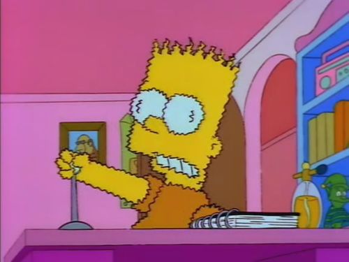 The episode starts off with Bart’s fantasy of a school science fair, which had Principal Skinner say one of the craziest lines I’ve heard in a while, “for a school with no Asian kids I think we put on a pretty good science fair.” Oh the 90’s. Anyway, we see that Bart’s project involves him creating some sort of Go-Go ray gun that makes people involuntarily dance when he shoots them with it. And after hitting all teachers with the ray, Principal Skinner is overjoyed and gives Bart first prize, which is where the dream ends and we see Lisa is just sitting on Bart’s bed saying “First Prize” over and over again just so screw with Bart. Siblings are great. After that little scene we learn what the kids actually have ready for the upcoming science fair. Lisa has created some giant tomato that she grew with steroids, and Bart is testing the effects of cigarette smoke on dogs by getting Santa’s Little Helper addicted to cigarettes. We then introduce the main plot by having Homer think to himself about how he’s going to skip out of work and sneak off to the Duff Brewery, which he announces to the family by accident. I love Homer talking to his brain so much.
